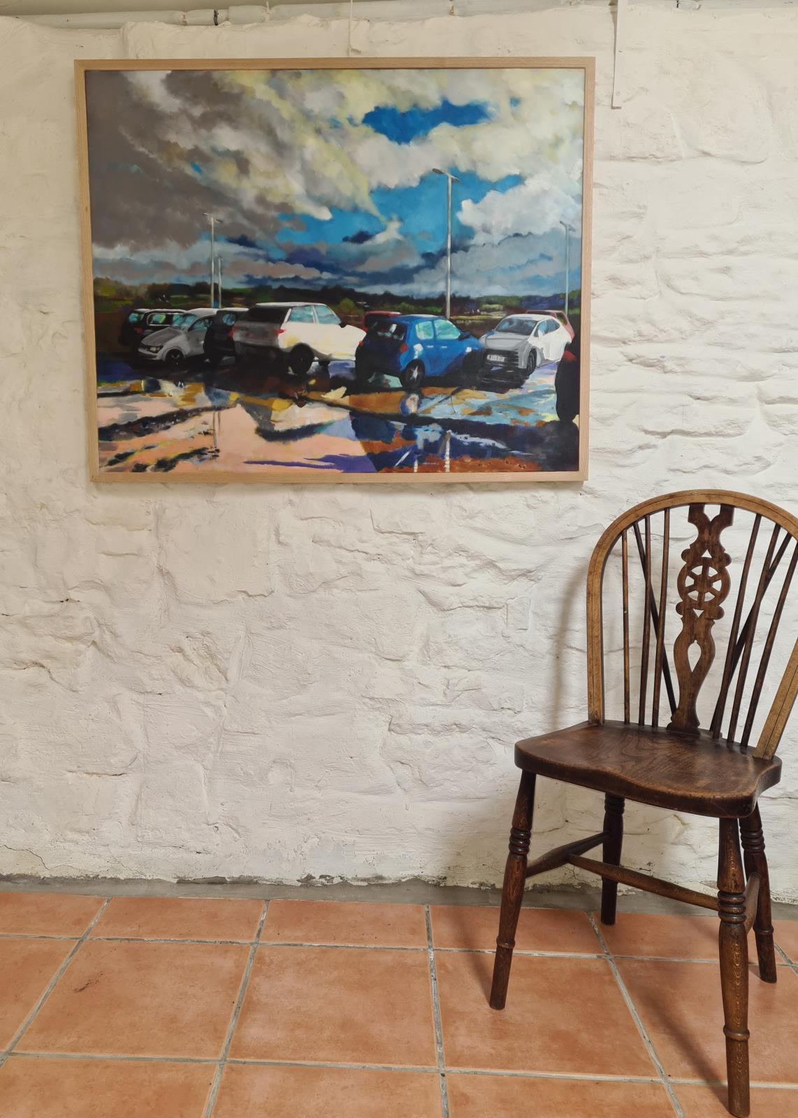 Inspired by a break in the clouds during a hail storm on New Year's Day, the blue car reflected in the puddles and matching the patch of blue sky