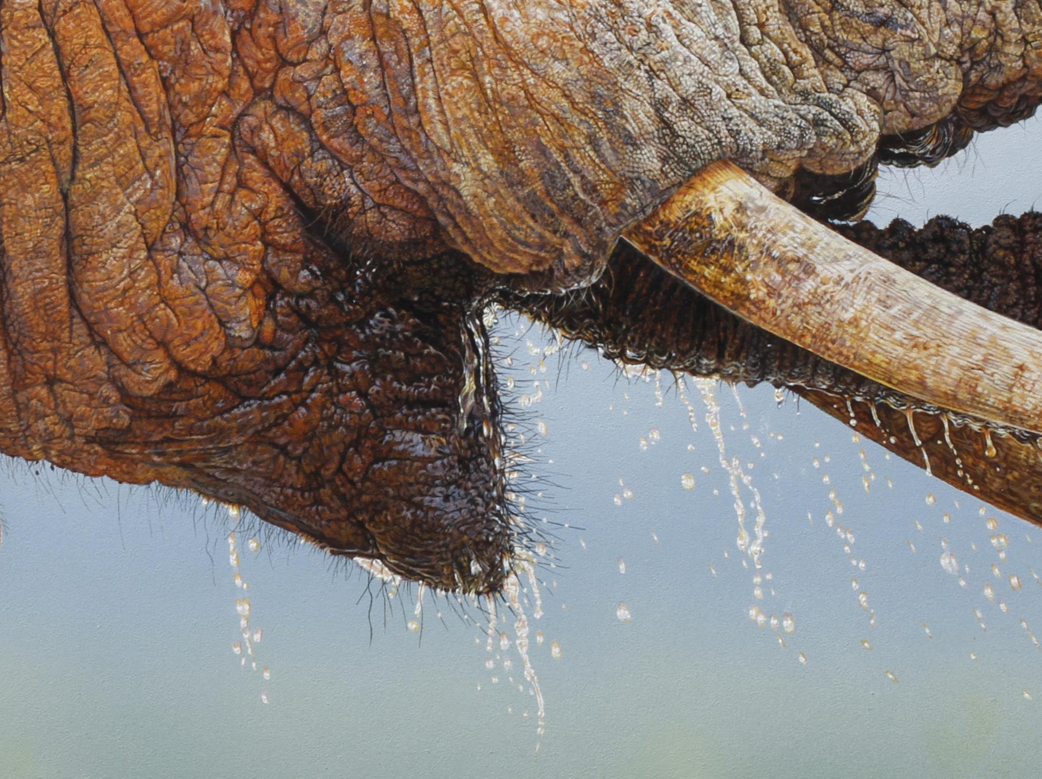 'Quench the Thirst', A portrait of an African Elephant drinking where water is essential, numbers have dropped dramatically. with loss of habitat , these majestic animals now face another grave challenge, drought! caused by climate change.