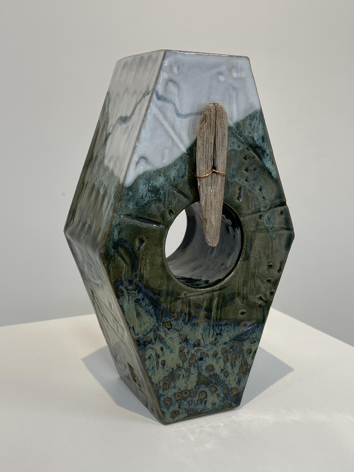 Glazed Stoneware Ceramic with found Cornish driftwood and copper wire