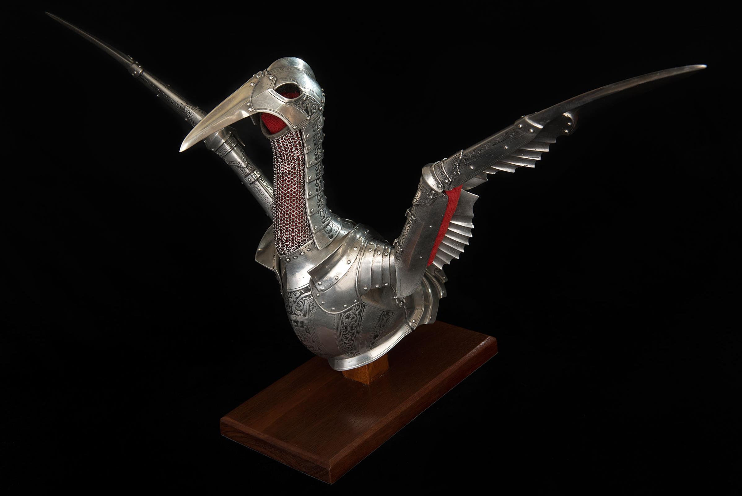 "Harness is a metaphor for everything with which we burden ourselves as we struggle through life. It’s the comfort zone in which we feel safe and protected but it comes at a price. Self-doubt taunts us, discouraging exploration of a wider perspective, leaving us weighed down like a bird in armour and unable to fly." Winner of the 2014 Passion for Freedom prize, Harness has been shown at all of the Royal Armouries sites including a three-month residency at the Tower of London.