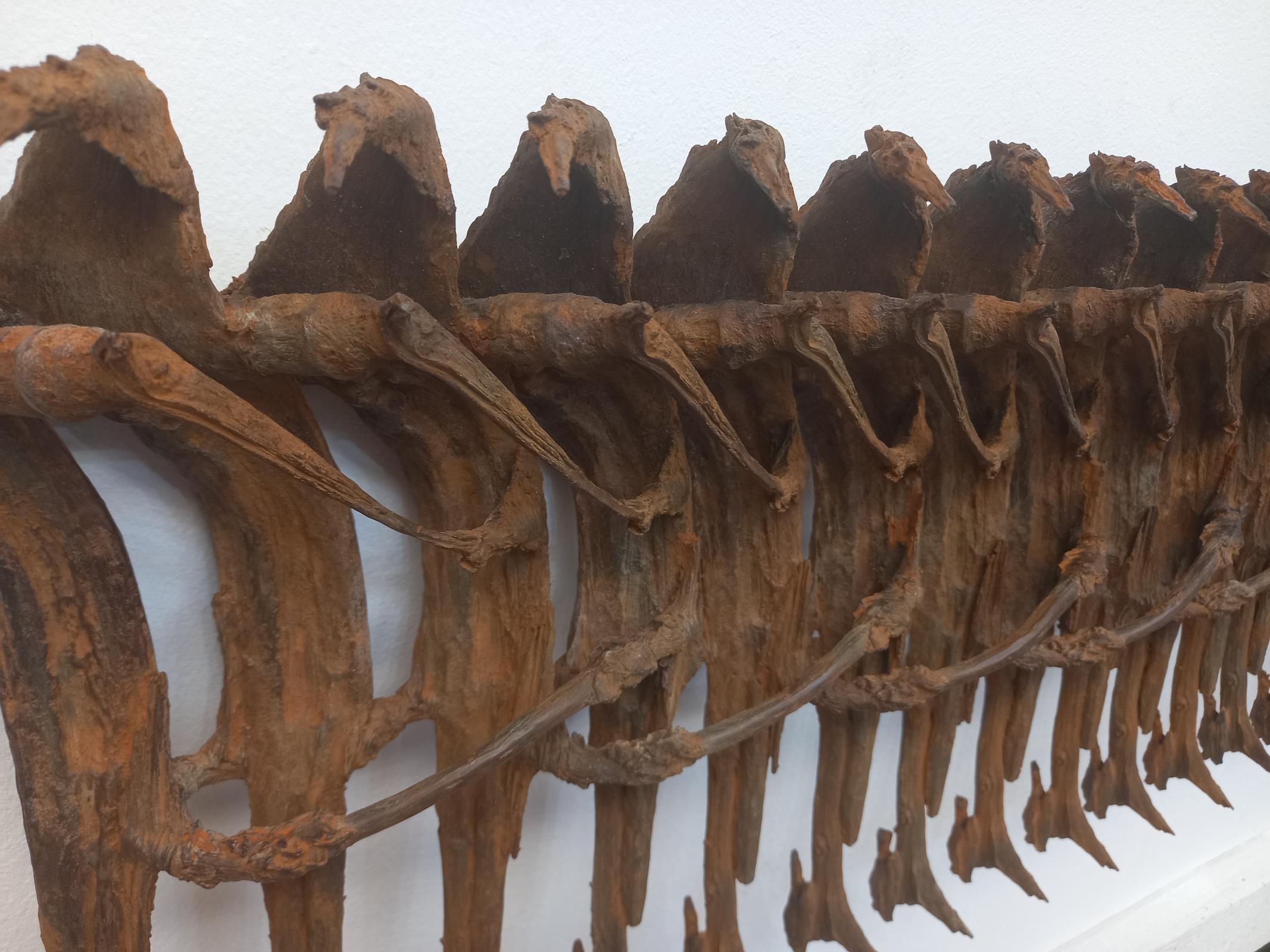 Pulse is inspired by nature's ability to reproduce itself through the generations. It is an assemblage comprising 105 separate castings of knots from decayed trees and is patinated to produce a rusty finish.